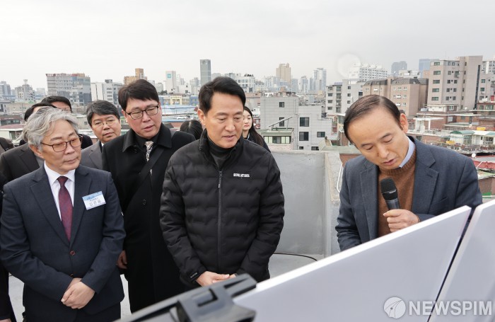 [서울=뉴스핌] 양윤모 기자 = 오세훈 서울시장이 10일 오후 영등포구 대림동 855-1 일대 대림1구역 재개발 현장을 찾아 브리핑을 받고 있다. 대림1구역은 제3종 일반주거지역으로 용적률은 283.2%가 적용돼 35층 규모의 12개 동, 총 1,026세대로 조성된다. 2025.12.10 yym58@newspim.com