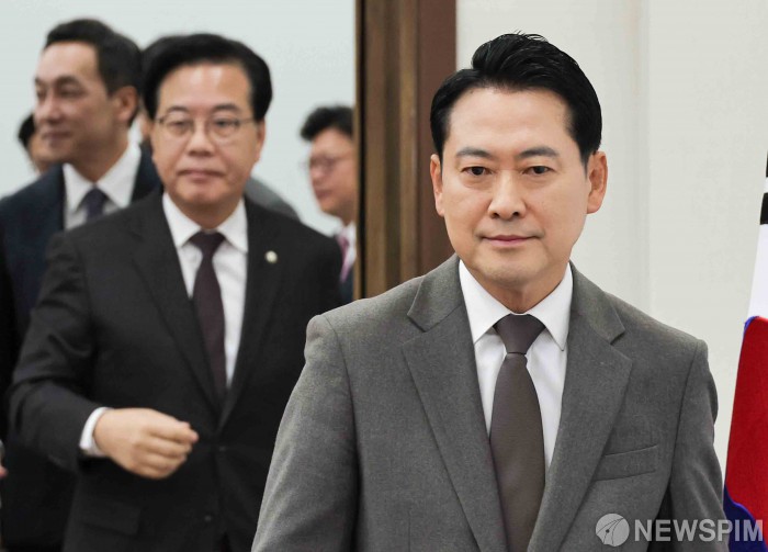 [서울=뉴스핌] 윤창빈 기자 = 장동혁 국민의힘 대표가 11일 서울 여의도 국회에서 열린최고위원회의에 참석하고 있다. 2025.12.11 pangbin@newspim.com