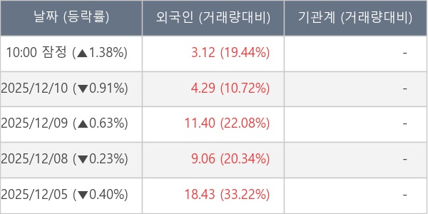 [표] 외국인ㆍ기관 순매매량 (단위 만주)