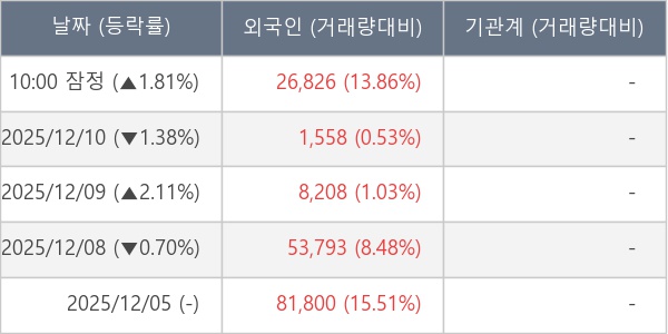 [표] 외국인ㆍ기관 순매매량 (단위 주)