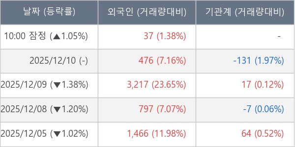 [표] 외국인ㆍ기관 순매매량 (단위 주)
