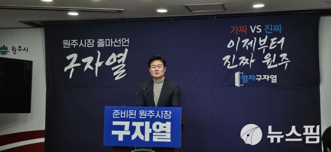 더불어민주당 구자열 전 강원도지사 비서실장이 11일 기자회견을 열고 2026년 6·3 지방선거 원주시장 출마를 공식 선언했다. 구 예비후보는 "멈춰선 원주의 미래를 다시 설계하겠다"는 강한 의지를 밝히며 "시민의 삶이 중심이 되는 도시, 사람이 주인인 원주를 만들겠다"고 말했다.