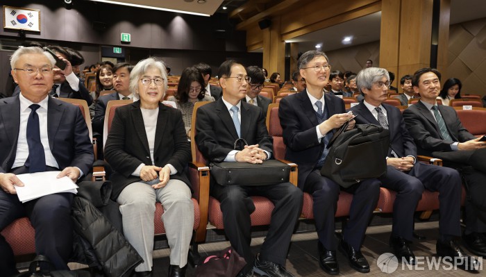 [서울=뉴스핌] 양윤모 기자 = 대법원 법원행정처가 11일 오전 서울 서초구 서울법원종합청사 청심홀에서 '국민을 위한 사법제도 개편 공청회' 3일차 종합토론을 개최한 가운데 참석자들이 대기하고 있다. 토론회는 황인성 법원행정처 기획조정실 기획총괄심의관의 사회로 김선수 사법연수원 석좌교수(전 대법관), 문형배 전 헌법재판소장 권한대행, 박은정 이화여자대학교 법학전문대학원 명예교수, 심석태 세명대학교 저널리즘대학원 교수, 조재연 성균관대학교 법학전문대학원 석좌교수(전 대법관), 차병직 법률신문 편집인(법무법인 클라스한결 변호사)가 토론에 참여했다. 2025.12.11 yym58@newspim.com