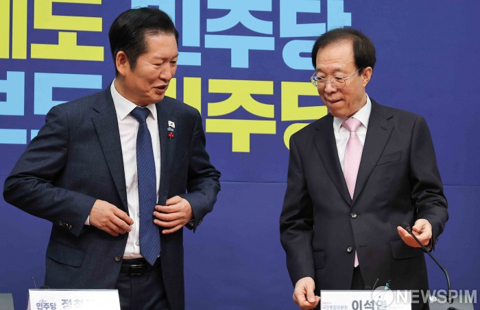 [서울=뉴스핌] 윤창빈 기자 = 정청래 더불어민주당 대표가 11일 서울 여의도 국회에서 이석연 국민통합위원장을 접견하고 있다. 2025.12.11 pangbin@newspim.com