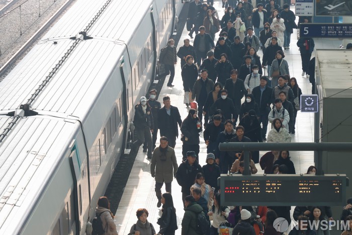 [서울=뉴스핌] 류기찬 기자 = 전국철도노동조합이 파업을 유보함에 따라 모든 열차가 정상 운행하고 있는 11일 오전 서울역 플랫폼에서 승객들이 이동하고 있다. 2025.12.11 ryuchan0925@newspim.com