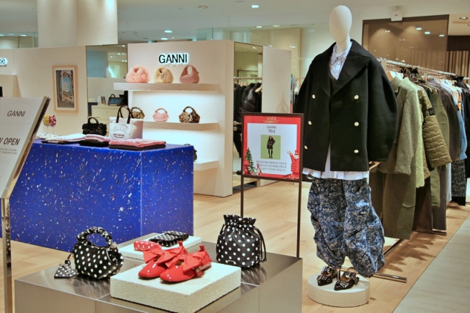 [광주=뉴스핌] 박진형 기자 = 11일 광주신세계 본관 4층에 덴마크의 컨템퍼리리 패션 브랜드 '가니(GANNI)'가 신규 입점했다. 오픈 기념으로 30% 할인 프로모션과 100만원 이상 구매 시 헤어 슈슈를 선착순 증정한다. 편안한 실루엣과 유니크한 컬러 패턴을 바탕으로으로 한 모던 감성 디자인이 특징이다. 20215.12.11 bless4ya@newspim.com
