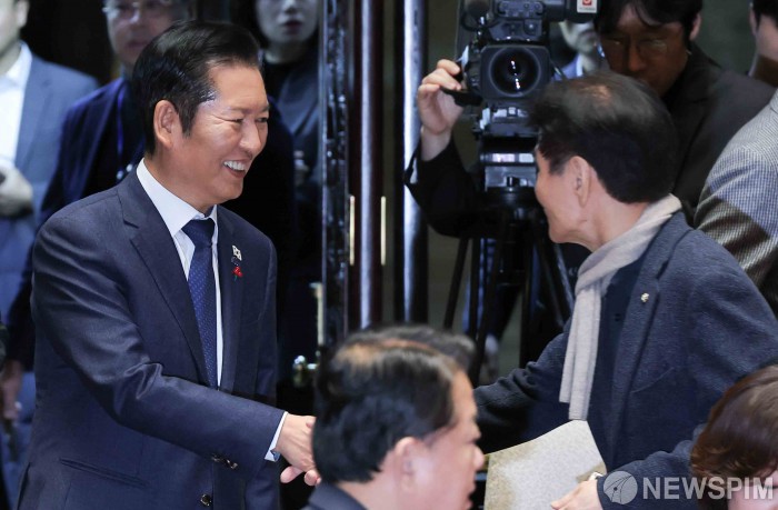[서울=뉴스핌] 윤창빈 기자 = 정청래 더불어민주당 대표가 11일 서울 여의도 국회에서열린 의원총회에 참석하고 있다. 2025.12.11 pangbin@newspim.com