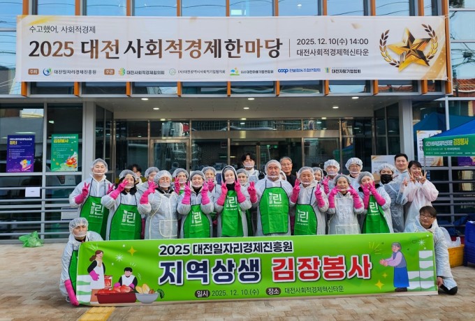 [대전=뉴스핌] 오영균 기자 = 대전일자리경제진흥원은 지난 10일 대전사회적경제혁신타운에서 '2025년 지역상생 김장봉사'를 진행했다고 11일 밝혔다.