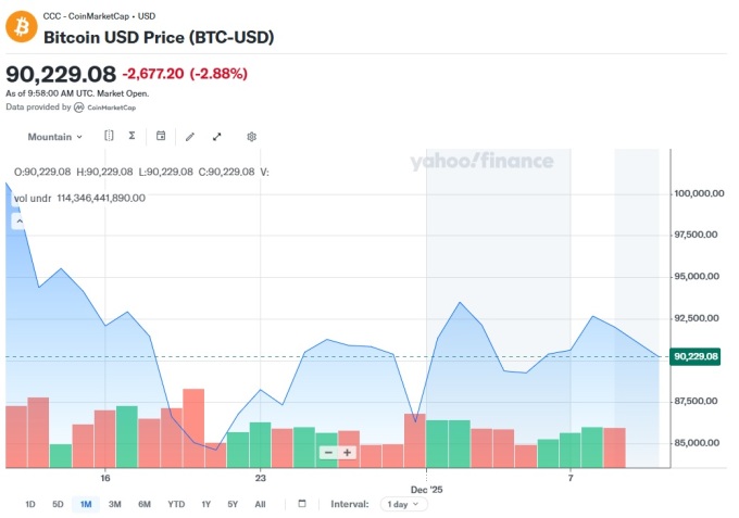 "9만~9만1천달러 지지 주목"… 연말 '산타랠리'는 불투명