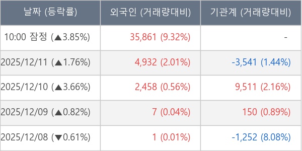[장중수급포착] 베뉴지, 외국인 6일 연속 순매수행진... 주가 +3.85%