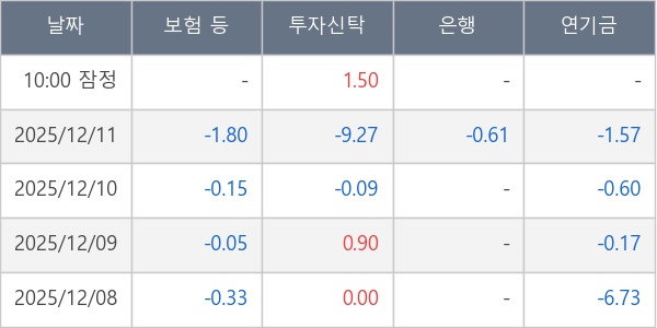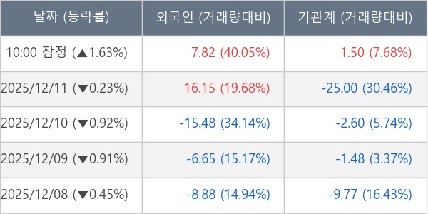 ※ 사모펀드 등 일부 기관의 순매매량은 표시되지 않음