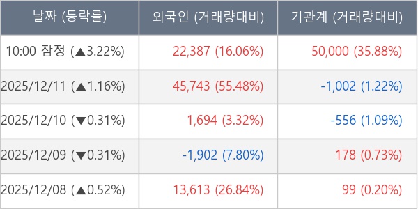 ※ 사모펀드 등 일부 기관의 순매매량은 표시되지 않음