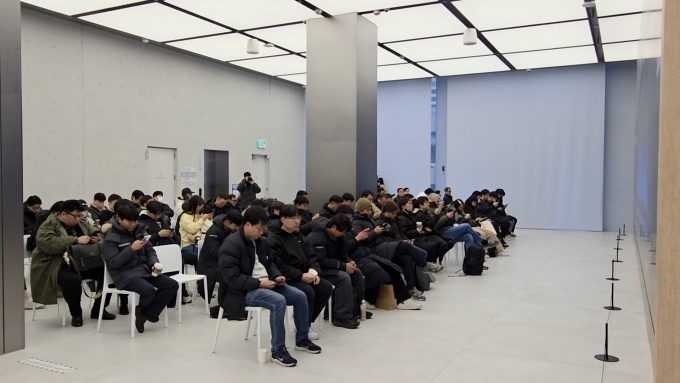 매장 안으로 들어가자, 3층과 4층 대기 공간 역시 비어 있는 좌석을 찾아보기 어려울 정도였다. 직원들은 예상치 못한 인파에 당황한 기색이었다. 오전 9시40분 기준 4층 대기실에 남은 자리는 2석뿐이었다.