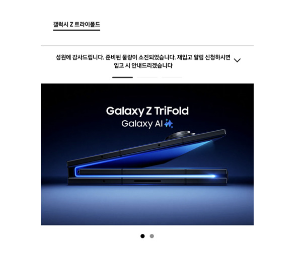 한편, 이날 삼성닷컴에서 갤럭시 Z 트라이폴드 제품은 모두 판매됐다. 현장 물량 역시 삼성 강남 기준 오전 11시 30분쯤 전량 소진됐다.