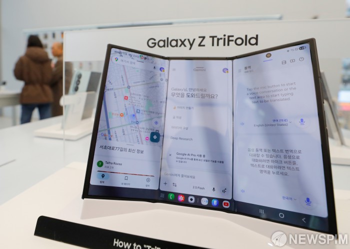 [서울=뉴스핌] 류기찬 기자 = 삼성전자의 두 번 접히는 '갤럭시 Z 트라이폴드' 첫 판매일인 12일 오전 서울 서초구 삼성 강남에 트라이폴드가 전시되어 있다. 2025.12.12 ryuchan0925@newspim.com