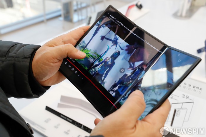 [서울=뉴스핌] 류기찬 기자 = 삼성전자의 두 번 접히는 '갤럭시 Z 트라이폴드' 첫 판매일인 12일 오전 서울 서초구 삼성 강남에서 시민들이 트라이폴드를 체험하고 있다. 2025.12.12 ryuchan0925@newspim.com