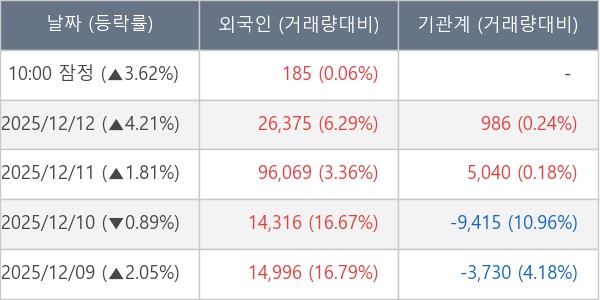 [장중수급포착] 티웨이홀딩스, 외국인 8일 연속 순매수행진... 주가 +3.62%