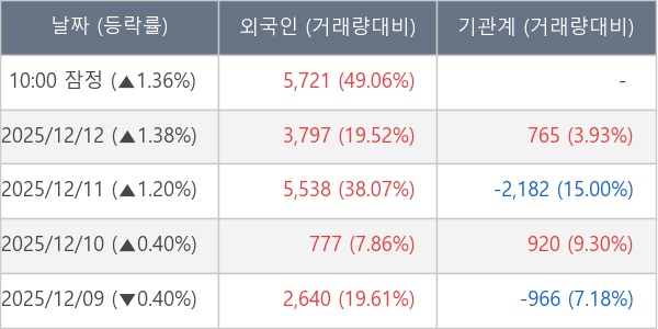 [장중수급포착] 쿠쿠홈시스, 외국인 5일 연속 순매수행진... 주가 +1.36%
