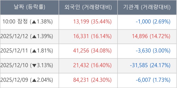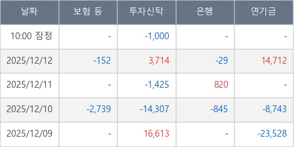 ※ 사모펀드 등 일부 기관의 순매매량은 표시되지 않음