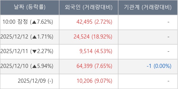 [장중수급포착] 포메탈, 외국인 12일 연속 순매수행진... 주가 +7.62%