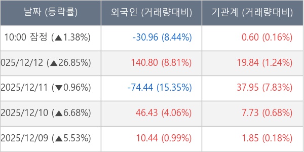 [장중수급포착] 클로봇, 기관 6일 연속 순매수행진... 주가 +1.38%