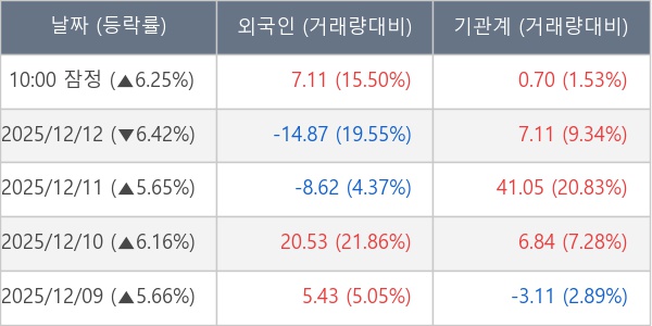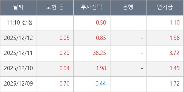 [표] 주요 기관별 순매매량 (단위 만주)
