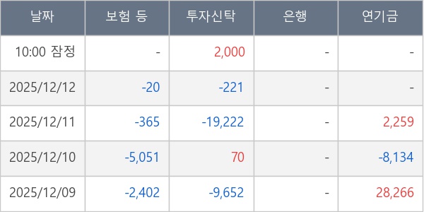 ※ 사모펀드 등 일부 기관의 순매매량은 표시되지 않음