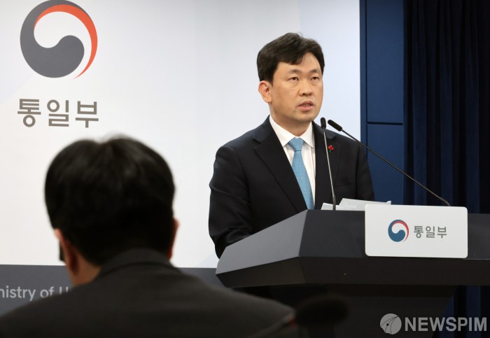 [서울=뉴스핌] 이길동 기자 = 윤민호 통일부 대변인이 15일 서울 종로구 정부서울청사에서 현안 관련 정례브리핑을 하고 있다. 2025.12.15 gdlee@newspim.com