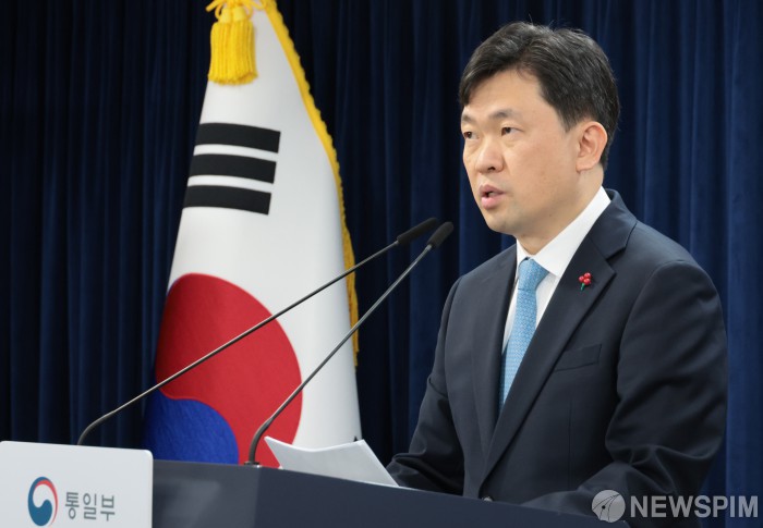 [서울=뉴스핌] 이길동 기자 = 윤민호 통일부 대변인이 15일 서울 종로구 정부서울청사에서 현안 관련 정례브리핑을 하고 있다. 2025.12.15 gdlee@newspim.com
