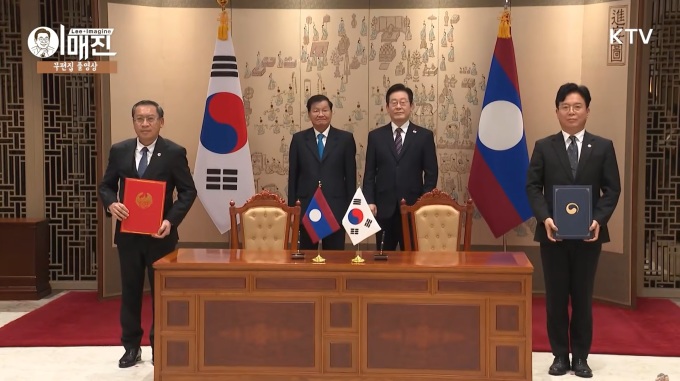 이 대통령은 "양국 간의 교역은 수교 당시 교역액 대비 약 20배로 늘어났고, 라오스를 방문하는 한국 국민도 계속 많아져 작년에는 양국의 상호 방문 규모가 역대 최대치를 기록했다"고 설명했다.