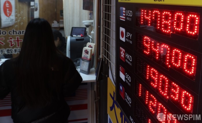 [서울=뉴스핌] 최지환 기자 = 달러/원 환율 오름세가 이어지며 외환당국이 대응책 마련을 논의 중인 가운데 15일 오후 서울 중구 명동 거리의 한 환전소에 환율이 표시되어 있다. 2025.12.15 choipix16@newspim.com