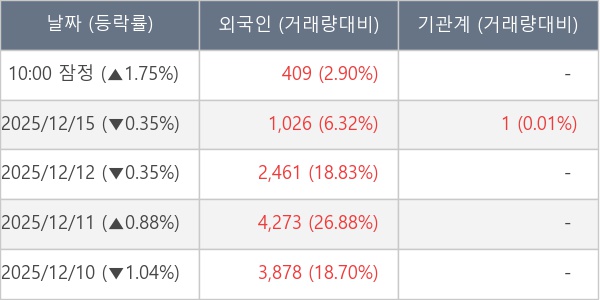 [표] 외국인ㆍ기관 순매매량 (단위 주)