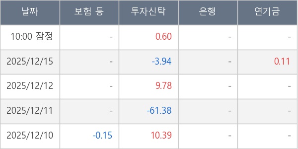 ※ 사모펀드 등 일부 기관의 순매매량은 표시되지 않음