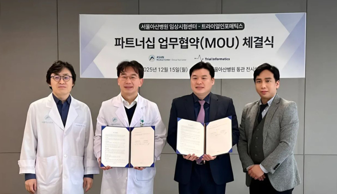 [서울=뉴스핌] 이나영 기자= 인공지능(AI) 기반의 임상시험 IT 솔루션 전문기업 트라이얼인포매틱스는 서울아산병원 임상시험센터와 업무협약(MOU)을 체결하고 임상시험 영상 데이터 관리·분석 및 연구 솔루션 개발을 위한 전략적 파트너십을 구축했다고 16일 밝혔다.