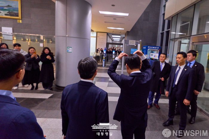 [서울=뉴스핌] 이재명 대통령이 16일 세종 나성동 국세청을 방문해 직원들을 향해 인사하고 있다. [사진=대통령실] 2025.12.16 photo@newspim.com3