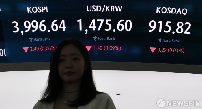 [서울=뉴스핌] 양윤모 기자 = 뉴욕 증시 3대 지수가 혼조세로 마감한 가운데, 17일 오전 코스피가 전장 종가보다 2.49 포인트(0.06%) 하락하며 3996.64로, 코스닥은 0.29 포인트(0.03%) 하락한 915.82로 장을 시작한 가운데, 서울 중구 하나은행 딜링룸에서 직원들이 업무를 보고 있다. 서울외환시장에서 달러/원 환율은 전장 대비 1.40원 하락한 1475.60원에 주간거래를 시작했다. 2025.12.17 yym58@newspim.com