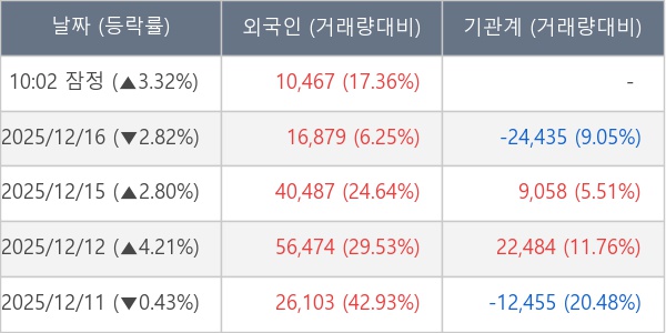 [표] 외국인ㆍ기관 순매매량 (단위 주)