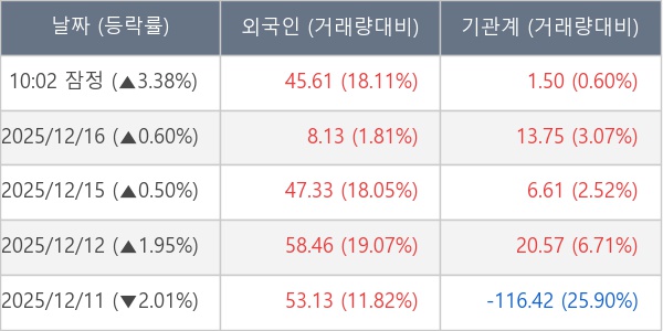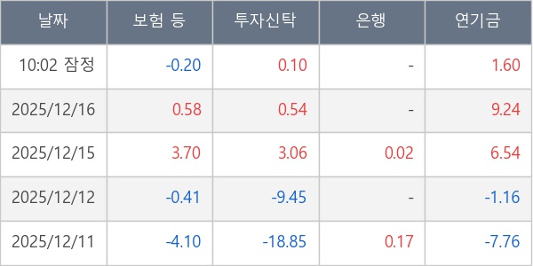 [표] 주요 기관별 순매매량 (단위 만주)