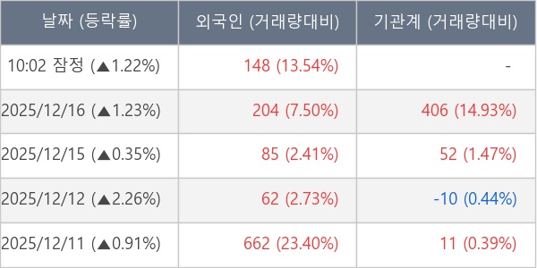 [서울=뉴스핌] 로보뉴스 = 17일 10시 15분 현재 미창석유(003650)는 전일 대비 1.22% (현재가 116,500원) 상승했고, 외국인이 최근 9일 연속 순매수(누적 3,216주, 잠정) 행진을 하고 있다.