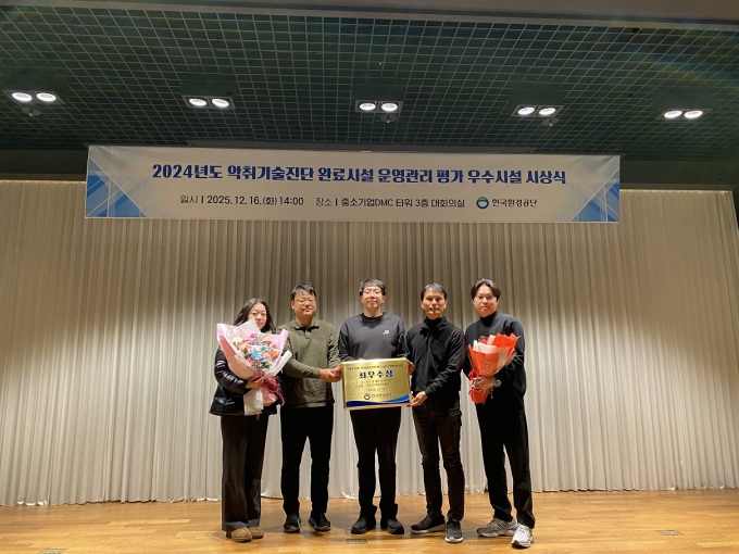 군포 대야 물말끔터가 지난 16일 중소기업 DMC타워에서 열린 '악취기술진단 완료시설 운영관리 평가' 시상식에서 최우수상을 수상했다.