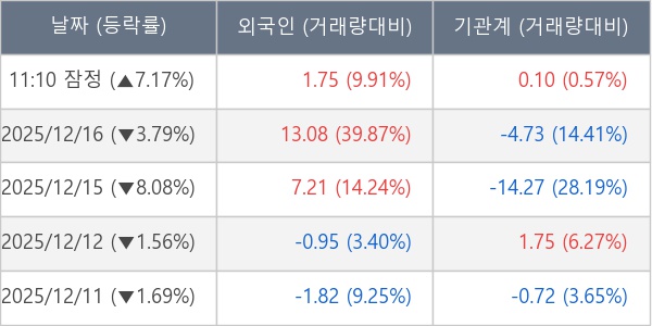 [표] 외국인ㆍ기관 순매매량 (단위 만주)
