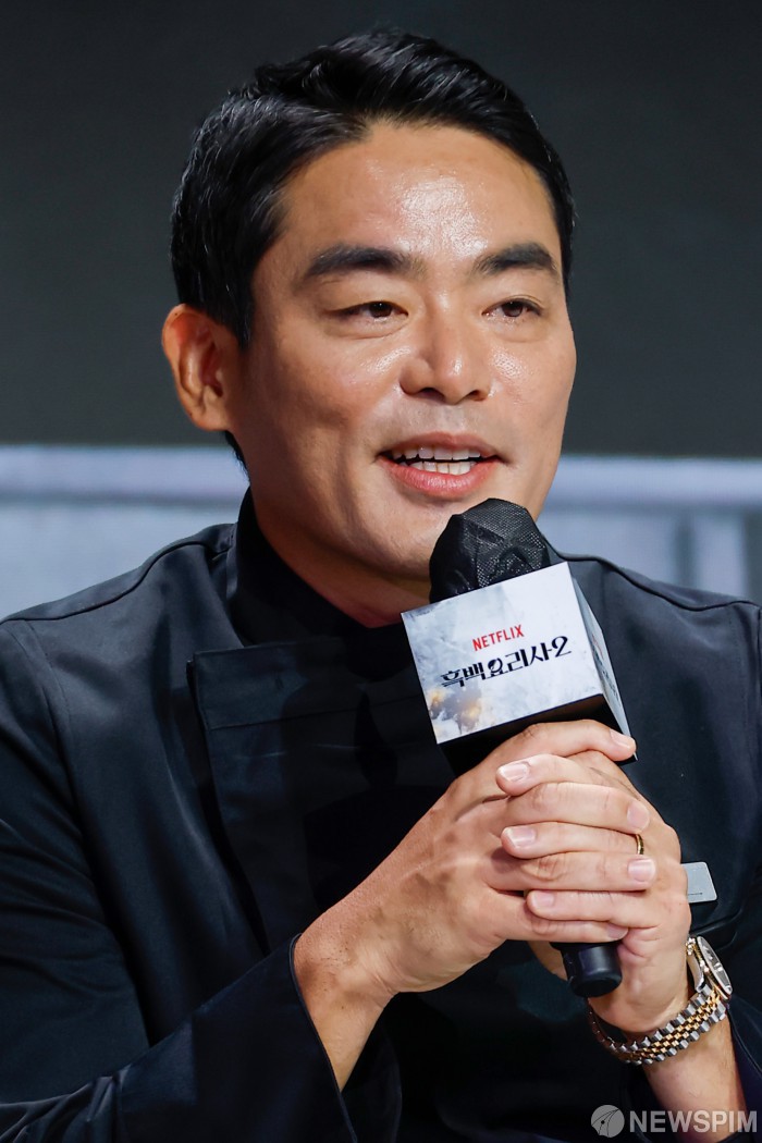 [서울=뉴스핌] 류기찬 기자 = 프렌치 파파 셰프가 17일 오전 서울 종로구 JW 메리어트 동대문 스퀘어 서울에서 열린 넷플릭스 예능 ‘흑백요리사: 요리 계급전쟁2’ 기자간담회에서 인사말을 하고 있다. '흑백요리사2'는 오직 맛으로 계급을 뒤집으려는 재야의 고수 '흑수저' 셰프들과 이를 지키려는 대한민국 최고 수준의 스타 셰프 '백수저'들이 펼치는 요리 서바이벌 예능이다. 2025.12.17 ryuchan0925@newspim.com