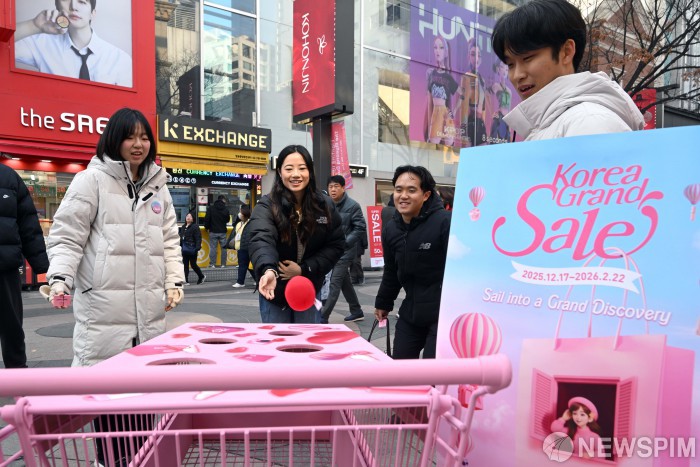[서울=뉴스핌] 김학선 기자 = 문화체육관광부와 한국방문의해위원회가 외국인의 방한 관광과 소비를 촉진하기 위한 쇼핑관광축제 '2026 코리아그랜드세일'을 내년 2월 22일까지 개최한다. 17일 서울 명동 플레이트럭에서 외국인 관광객이 이벤트 게임에 참여하고 있다. 2025.12.17 yooksa@newspim.com