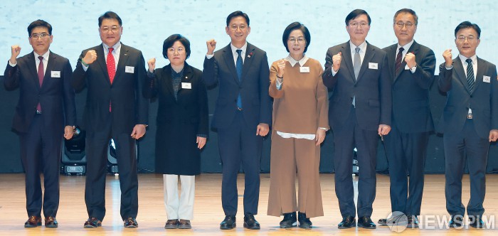[서울=뉴스핌] 류기찬 기자 = 배경훈 과학기술정보통신부 장관을 비롯한 참석자들이 18일 오전 서울 강남구 코엑스에서 열린 ‘국가전략기술 SUMMIT 2025’에서 기념촬영을 하고 있다. 2025.12.18 ryuchan0925@newspim.com