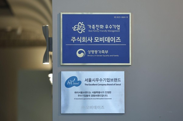 '가족친화인증'은 일·가정 양립을 지원하는 제도와 문화를 실질적으로 운영하고 있는 기업·기관을 평가해 일정 기준을 충족한 곳에 부여되는 정부 인증이다. 모비데이즈를 포함해 국내 주요 기업들이 올해 인증을 신규 또는 연장 획득했다.