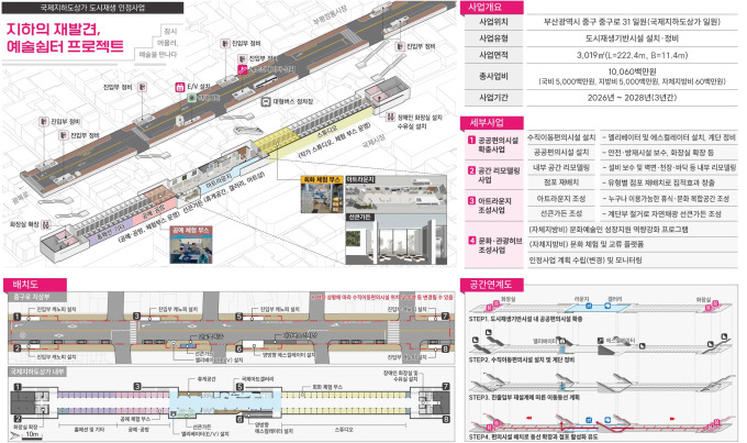 '지하의 재발견, 예술쉼터 프로젝트'는 국제지하도상가 내 부족한 화장실과 휴식 공간을 확충하고 공연·전시 등 문화 행사를 도입해 지역 활성화를 도모하는 사업이다.