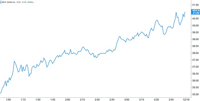 19일(현지시간) 메드라인은 한파가 몰아친 주식시장에서 투자자들의 뜨거운 환영을 받았다. 이날 나스닥거래소에 상장된 메드라인은 상장가 29달러 대비 41% 급등한 41달러에서 거래를 마쳤다. 이날 주가지수 S&P500과 나스닥종합지수가 각각 1%, 2% 떨어진 것과 대조적이다.