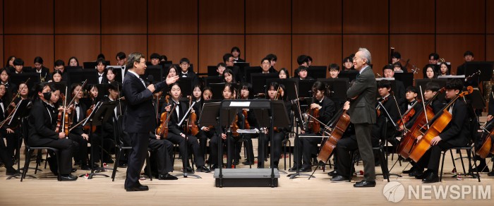 [서울=뉴스핌] 정근식 서울시교육감이 18일 오후 서울 종로구 서울아트센터 도암홀에서 열린 '2025 서울학생필하모닉오케스트라 정기 연주회'에 참석해 학생들을 격려하고 있다. [사진=서울시교육청] 2025.12.19 photo@newspim.com