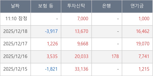 ※ 사모펀드 등 일부 기관의 순매매량은 표시되지 않음