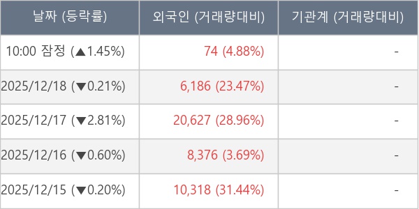[표] 외국인ㆍ기관 순매매량 (단위 주)